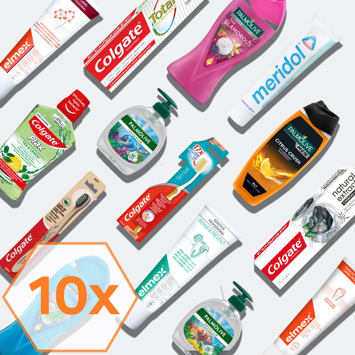 10 x MEGA ZESTAW produktów do higieny jamy ustnej Colgate®, elmex®, meridol® oraz pielęgnacji ciała i rąk Palmolive®