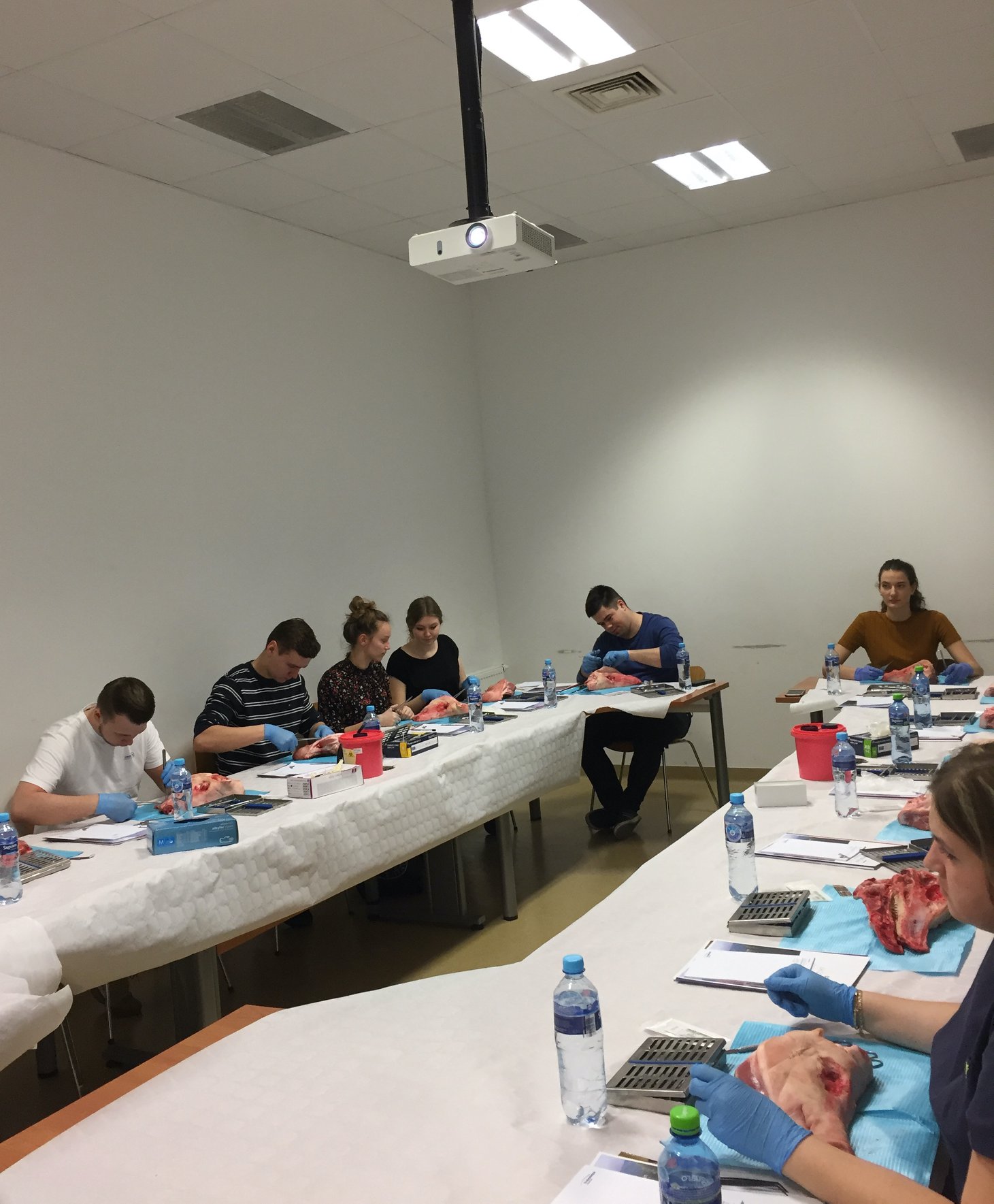 Uczestnicy szkolenia po intensywnych godzinach zmagań z nitką i igłą wyszli bogatsi o umiejętność założenia różnych rodzajów szwów stosowanych w chirurgii periodontologicznej, ale również mieli okazję poznać zasady pokrywania recesji.